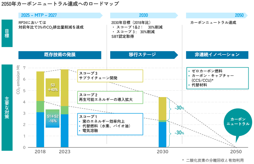 カーボンニュートラルに向けた最初の重要なマイルストーンは、2024年度末(2024年4月)にNSGグループRP24目標を達成しました。2つ目の重要なマイルストーンは、2030年に検証済みのSBTを達成することです。今後数年間で、さらなるSBTiへのコミットメントを公表し、絶対的な排出量削減のさらなるマイルストーンを確立していく予定です。これらの絶対的な目標削減のマイルストーンは、将来のNSGグループのプロジェクトのタイムスケールに合わせて設定されます。例えば、新しい中期計画の活動や目標の中で、実質的には3年間のローリング計画として、マイルストーンの目標が設定されます。